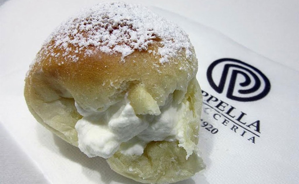 Nel cuore della Sanità -luogo natio di Totò- tra i palazzi monumentali e le leggende del sottosuolo possiamo assaporare un dolce napoletano di tendenza inventato dalla pasticceria Poppella. Si tratta di piccole brioches ripiene di crema di latte, panna e ricotta. Amate da tutti, la ricetta è stata replicata anche da altre pasticcerie napoletane. La Pasticceria Poppella è sita in Via Arena alla Sanità 28.