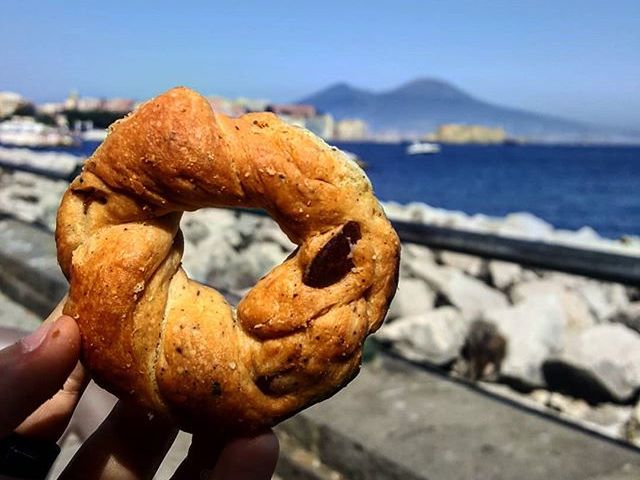 Se c’è uno spuntino che appaga tutti i nostri sensi sicuramente è il tarallo napoletano differente dal classico tarallo per l’aggiunta delle mandorle. Lo spezzafame per eccellenza acquista la sua fama in città a partire dalla fine del ‘700. Il tarallo napoletano era composto da ingredienti molto calorici ideali per affrontare lunghe giornate fatte di lavori faticosi, inoltre la sua economicità lo rese un prodotto popolare. I migliori tarallifici napoletani sono senza dubbio il Tarallificio Leopoldo nato più di un secolo fa in Via Foria 212, Taralleria Napoletana in Via San Biagio dei Librai 3 dove provare una vasta scelta di gusti oltre al classico nzogna e pepe, infine sono da provare i taralli venduti dai Chioschi a Mergellina accompagnati da una birra fredda lasciandosi inebriare dalla brezza marina.