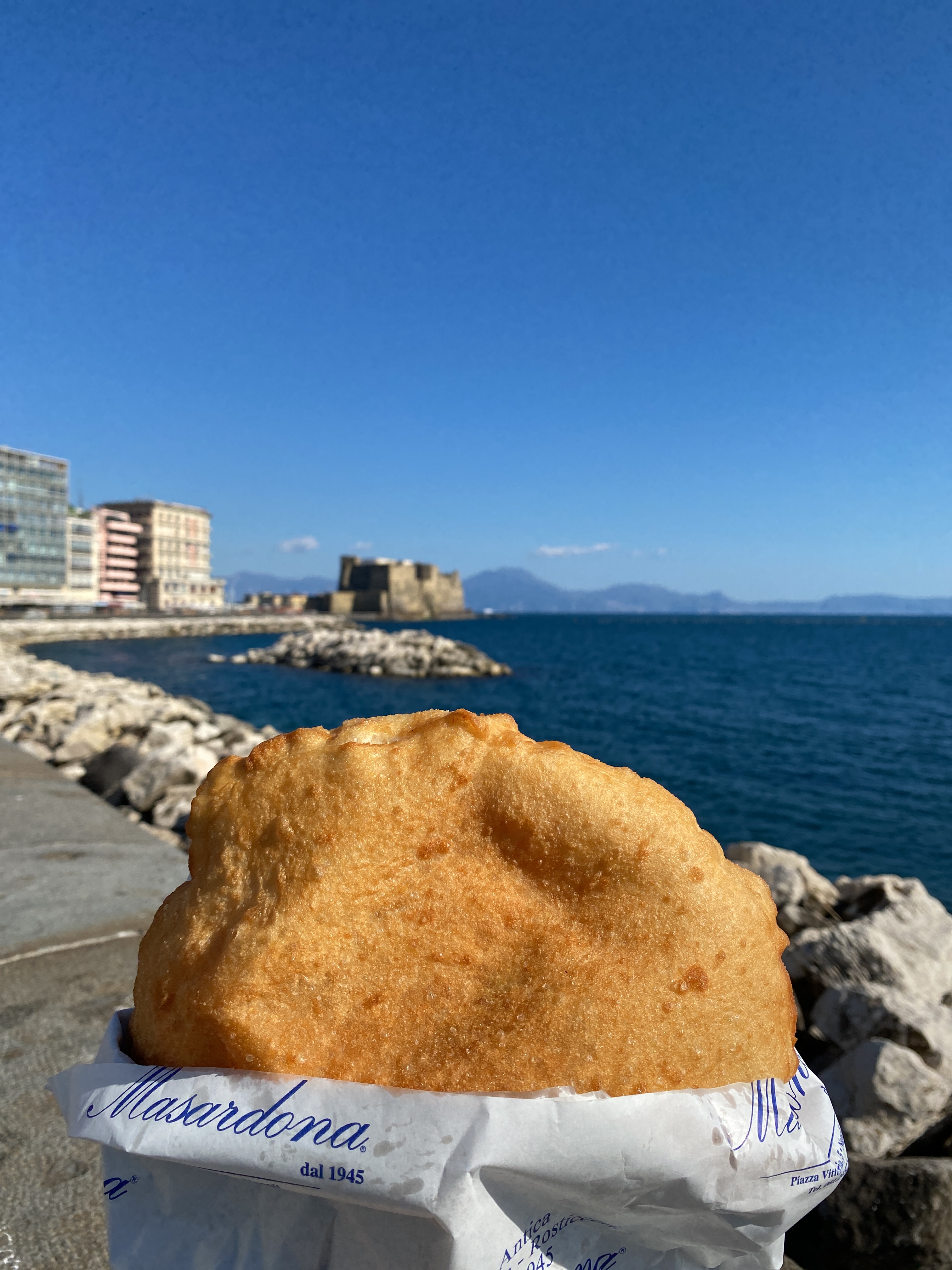 Lo street food napoletano capace di far innamorare intere generazioni di turisti e non è sicuramente la pizza fritta. Un ripieno fritto farcito di ricotta, ciccioli, provola e pepe nella versione classica. Negli anni difficili del dopoguerra molti forni a legna andarono distrutti durante i bombardamenti, allora si pensò di friggere nell’olio bollente l’impasto, che si gonfiava e dava la sensazione di maggiore sazietà. Protagonista di numerosi film, tra cui L’oro di Napoli con Sophia Loren, fu chiamata anche “a ogge a otto”, cioè la mangi oggi e la paghi tra otto giorni. Le migliori pizze fritte a Napoli le ho mangiate da Antica Pizza Fritta da Zia Esterina Sorbillo in Via dei Tribunali 37, da Antica Pizzeria De’ Figliole in Via Giudecca Vecchia 39, da Antica Pizzeria La Masardona in Via Giulio Cesare Capaccio 27.